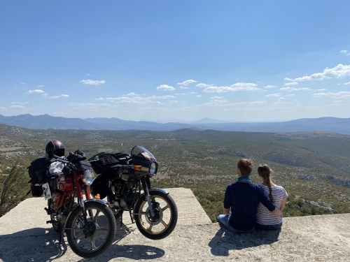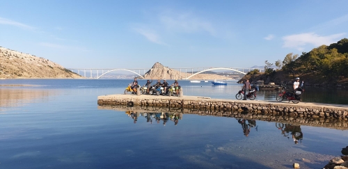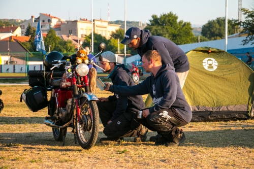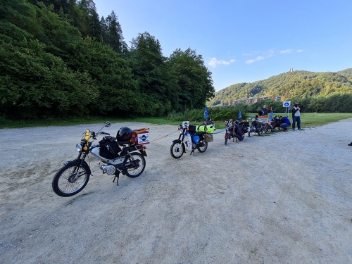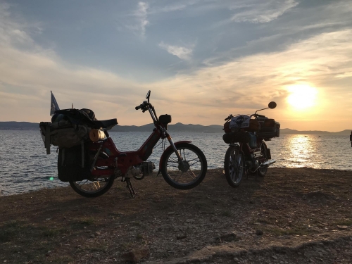 Von einfach war nie die Rede hieß es am Start, jetzt stehen wir am südlichsten Punkt des Rodeos, knapp 500 Kilometer vom Startpunkt entfernt mit unseren 50ccm Hobeln irgendwo in der Pampa, ohne Sprit. Die Meeresbrise weht uns gefühlt schon um die Nase. Auch wenn der Strand noch 98 km entfernt ist, können wir es schon riechen. Nun ja, vielleicht ist es auch der Schweiß der uns auf der Stirn steht, denn nicht nur unser Sprit sondern auch unsere Wasserreserven gehen zu Ende. Auf die Empfehlung vom Veranstalter, sind wir auf einer Straße mit extrem wenig Verkehr unterwegs. Kaum ein Tourist verirrt sich auf die Piste und die Einheimischen haben anscheinend gerade Siesta. Plötzlich hören wir ein brummen und zeitgleich gehen die Mundwinkel nach oben, vielleicht kann uns jemand helfen. Nun, es war die kroatische Polizei, schneller check, Verbandskasten, Warnweste dabei... Stress mit der Rennleitung braucht jetzt wirklich niemand. Die zwei uniformierten steigen aus und die Blicke wandern skeptisch zu den vollgepackten, vollgeklebten Mopeds mit den ausländischen Kennzeichen. Mit unserem perfekten “Denglisch” versuchen wir noch unser vorhaben zu erklären. Wir wissen nicht wieviel sie verstanden haben, auf jeden Fall so viel, dass sich die Kroaten dazu entschlossen 50 Kilometer zur nächsten Tankstelle und wieder zurück zu fahren, um uns Sprit für unsere zwei Takter zu besorgen.